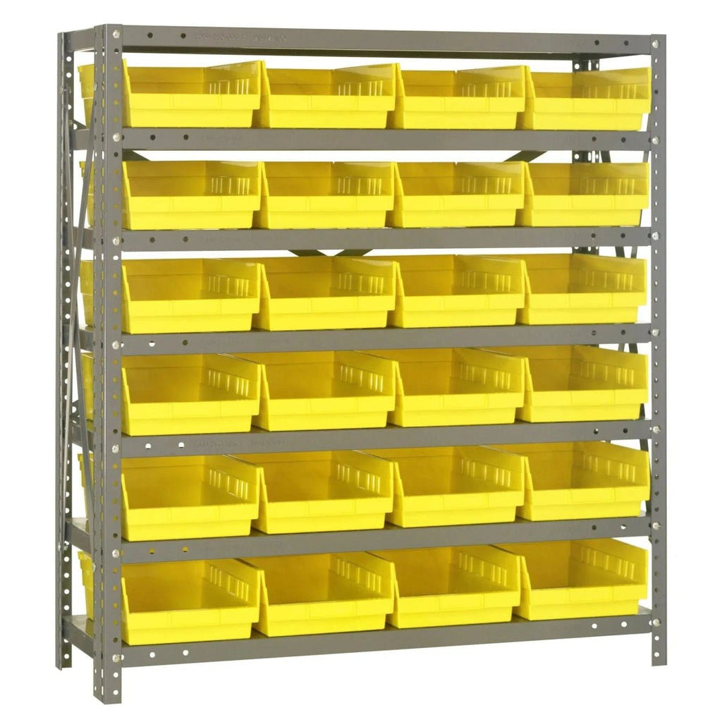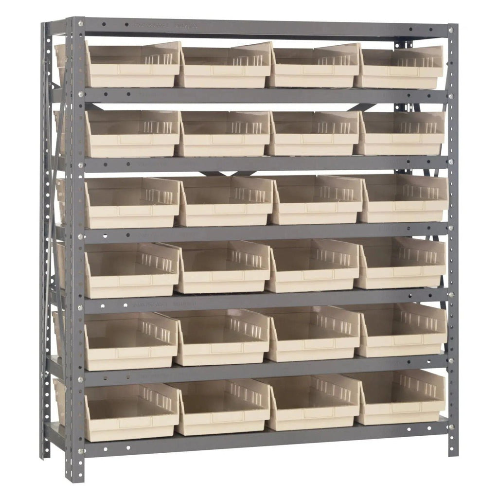 - 12" x 36" x 39" Steel Shelf Bin Organizer with 7 Shelves & 24 Bins.