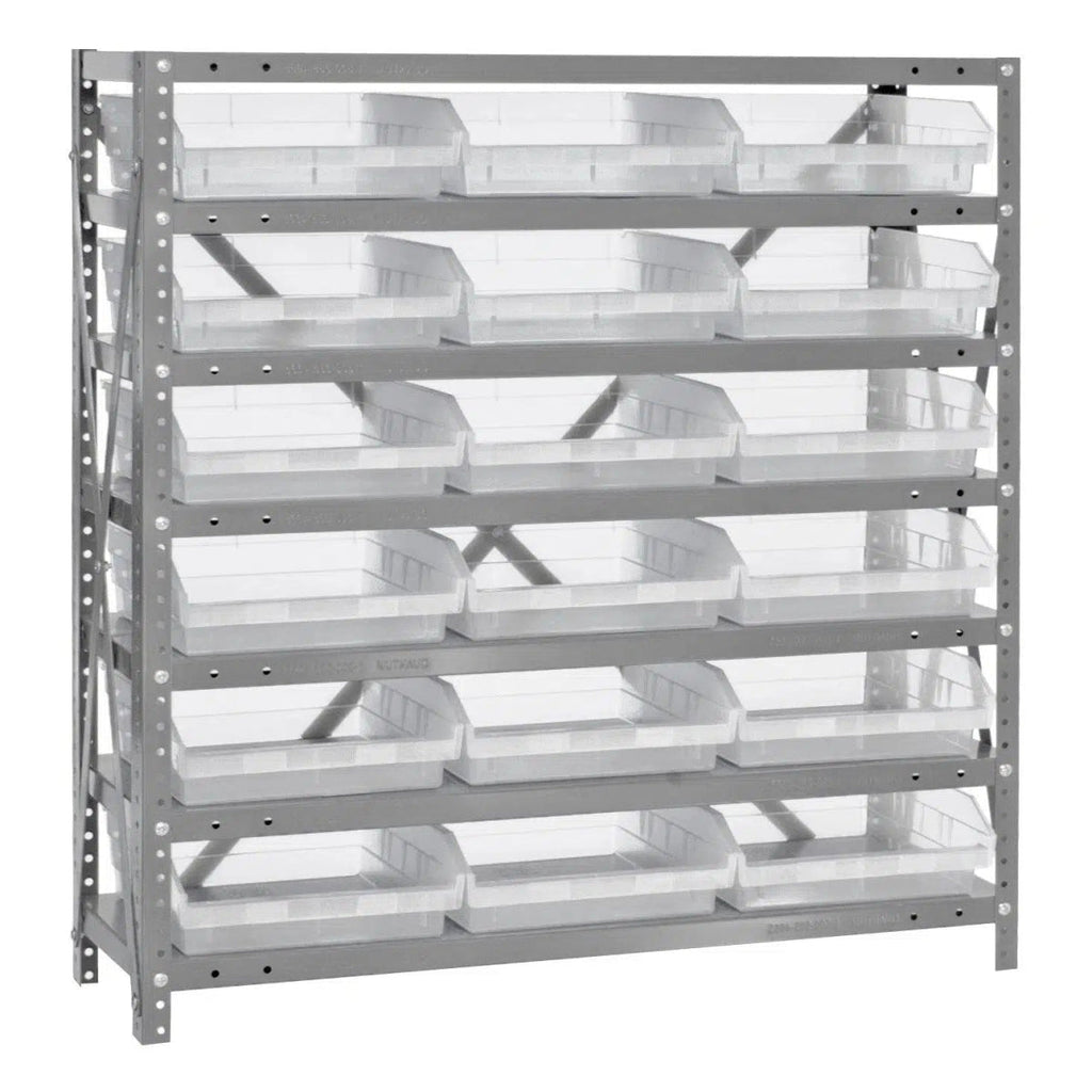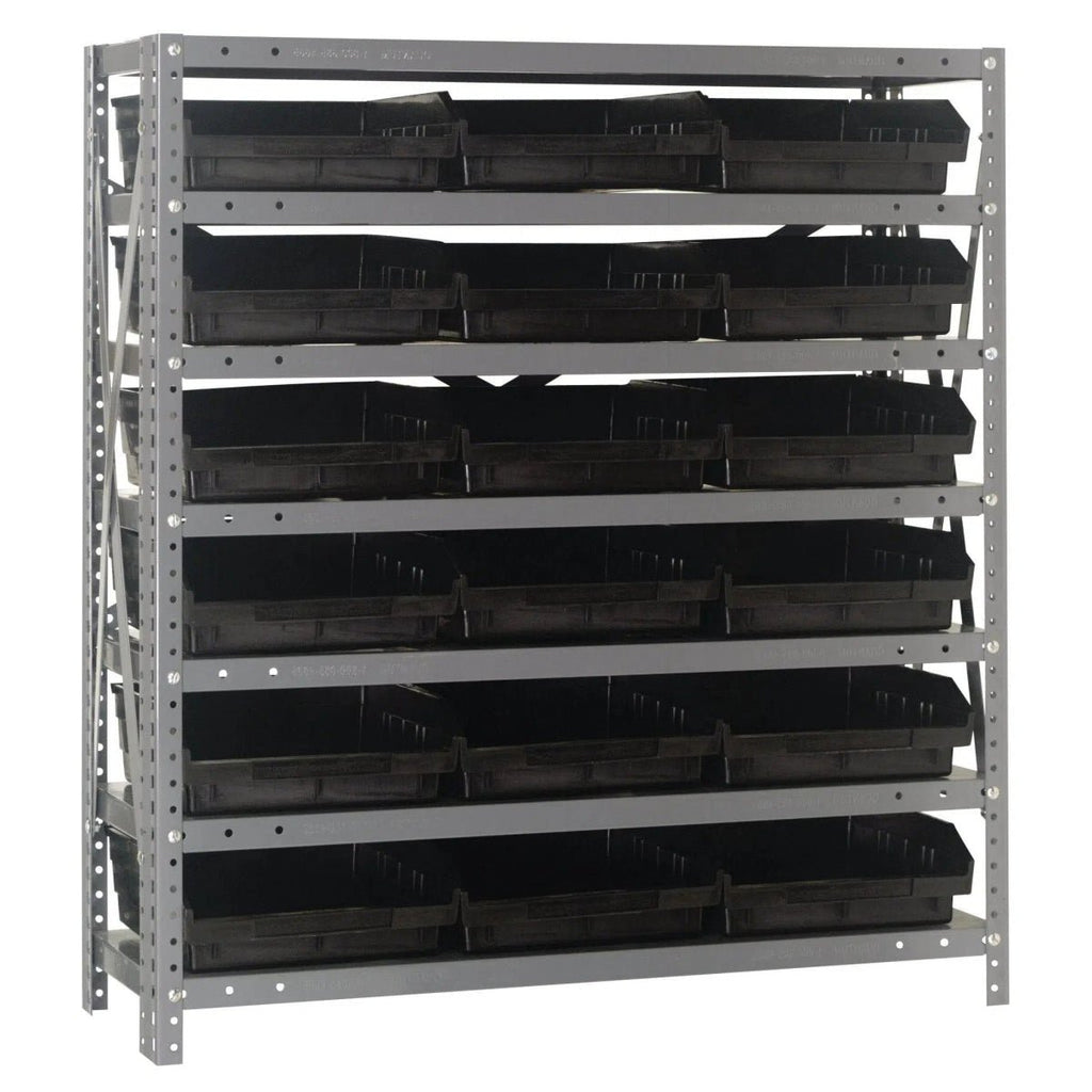 - 12" x 36" x 39" Steel Shelf Bin Organizer with 7 Shelves & 18 Bins.