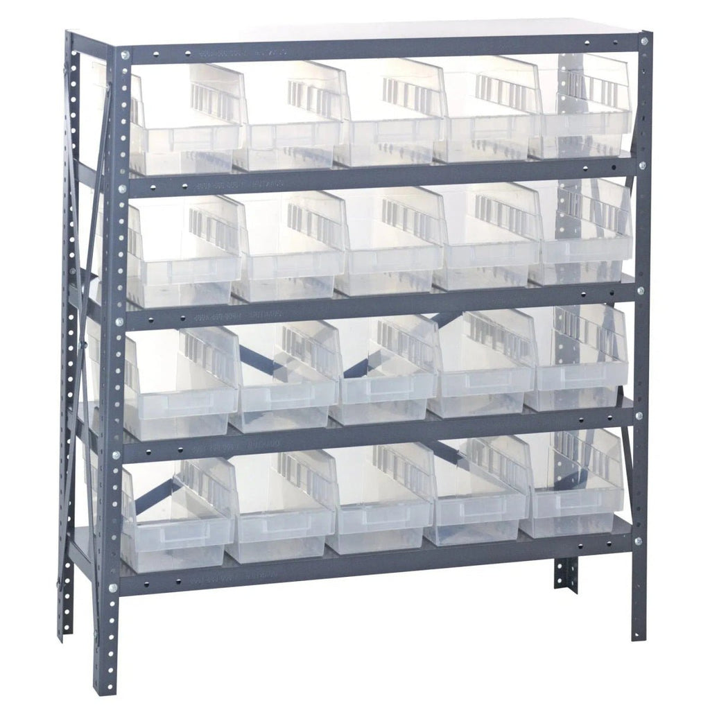 - 12" x 36" x 39" Steel Shelf Bin Organizer with 5 Shelves & 20 Bins.