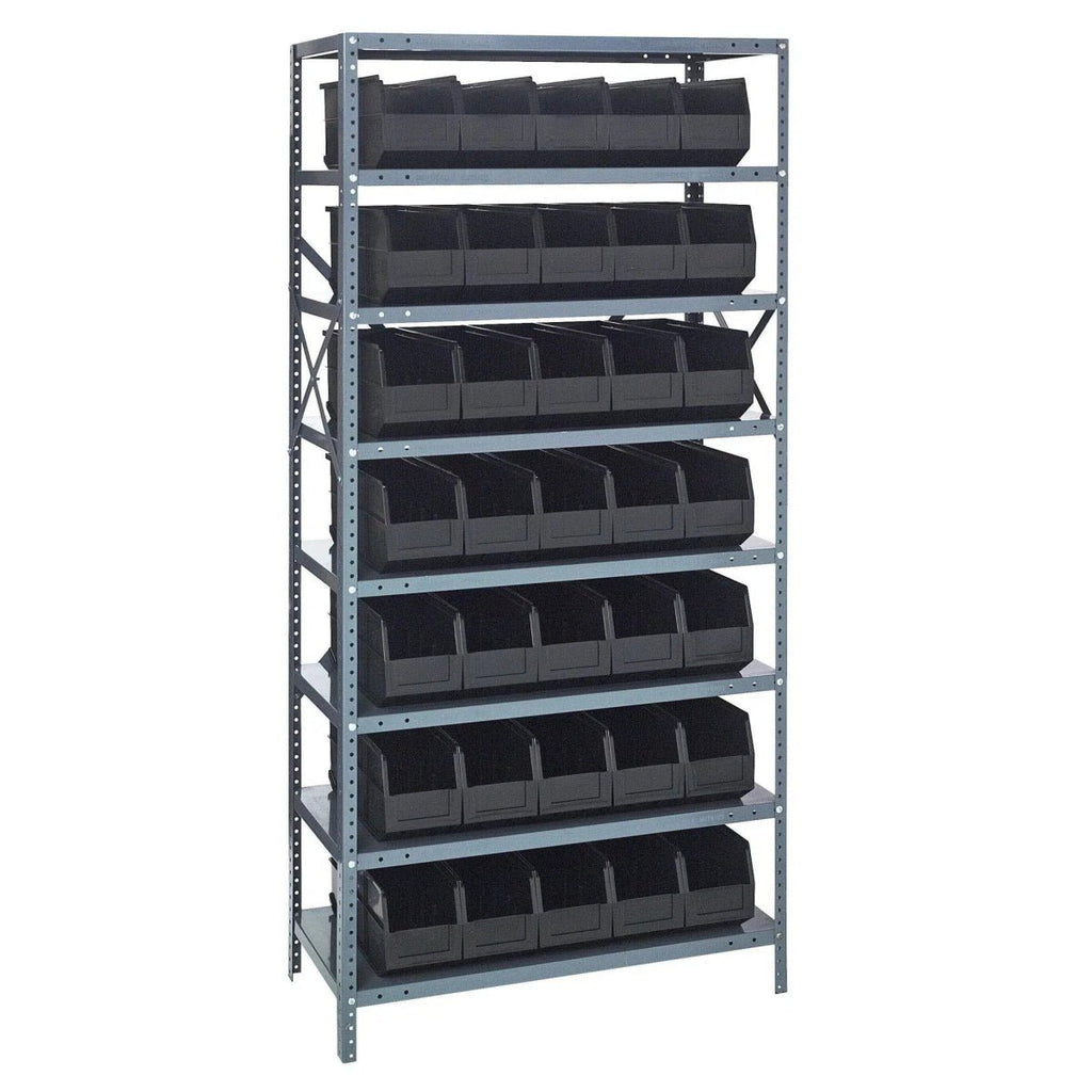 - 12" x 36" x 75" Steel Shelf Bin Organizer with 8 Shelves & 35 Bins.
