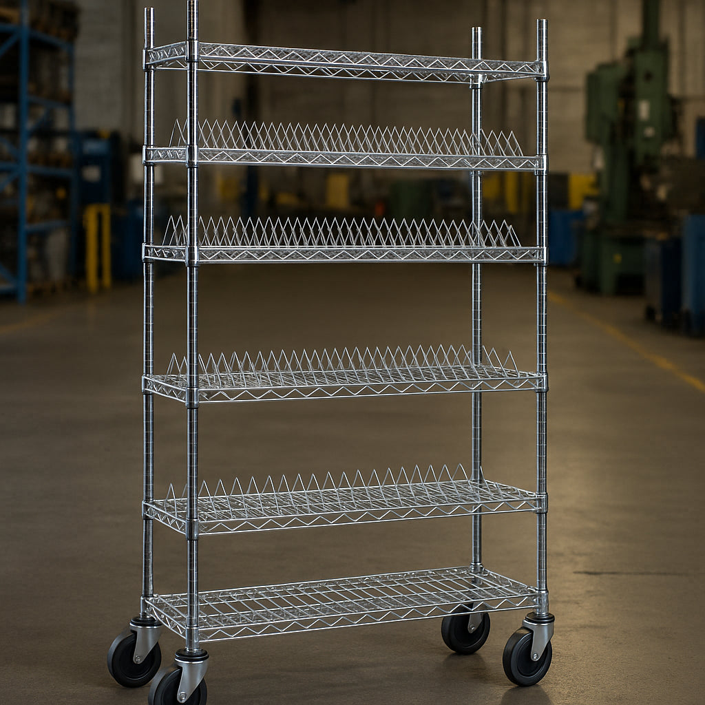 ESD Safe Reel Shelving Cart | Conductive Reel Storage for PCB Manufacturers | Chrome Finish